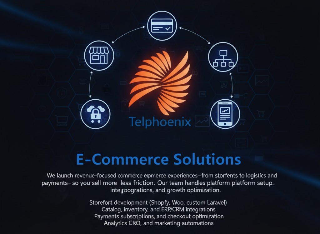 We launch revenue‑focused commerce experiences—from storefronts to logistics and payments—so you sell more with less friction. Our team handles platform setup, integrations, and growth optimization.